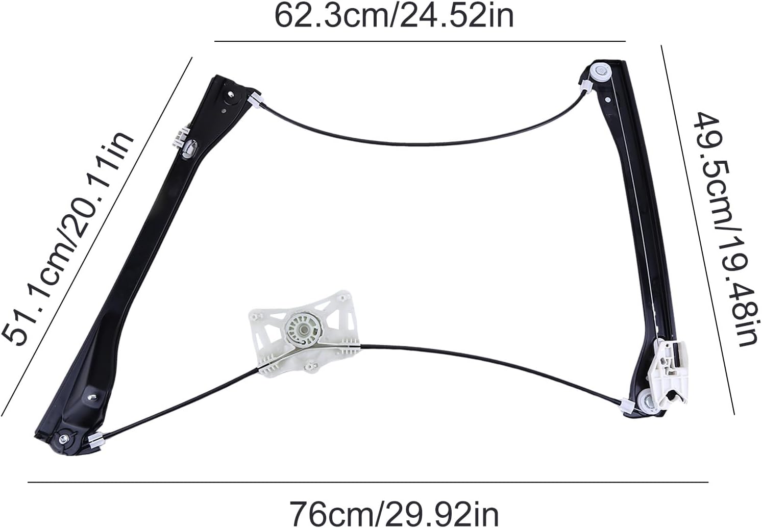 MaterialABS Plastic Heavy Duty Metal StructureOperating ModeElectricStrong lifting bracket insures efficient operation and longer durabilityThickened steel cable and capped ends resist commonly break or causing pull throughBuilt to meet or exceed your vehicles requirements for fitment, structural configuration, strength and torqueMatched with the original mounting holes, properly fitAdvantageThe window regulator assembly is made of quality material, which is wearable, durable, and scratch-resistantEasy to install direct replacement for the old or broken one.