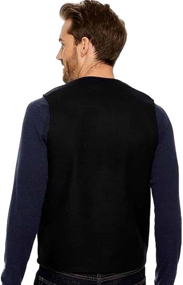 Durable and breathable Mackinaw Wool makes this vest a reliable choice for various conditions. It offers warmth even when wet, featuring a button closure, v-shaped neck, side hand pockets, and easy-access chest pockets. Ideal for outdoor activities and versatile for different environments.