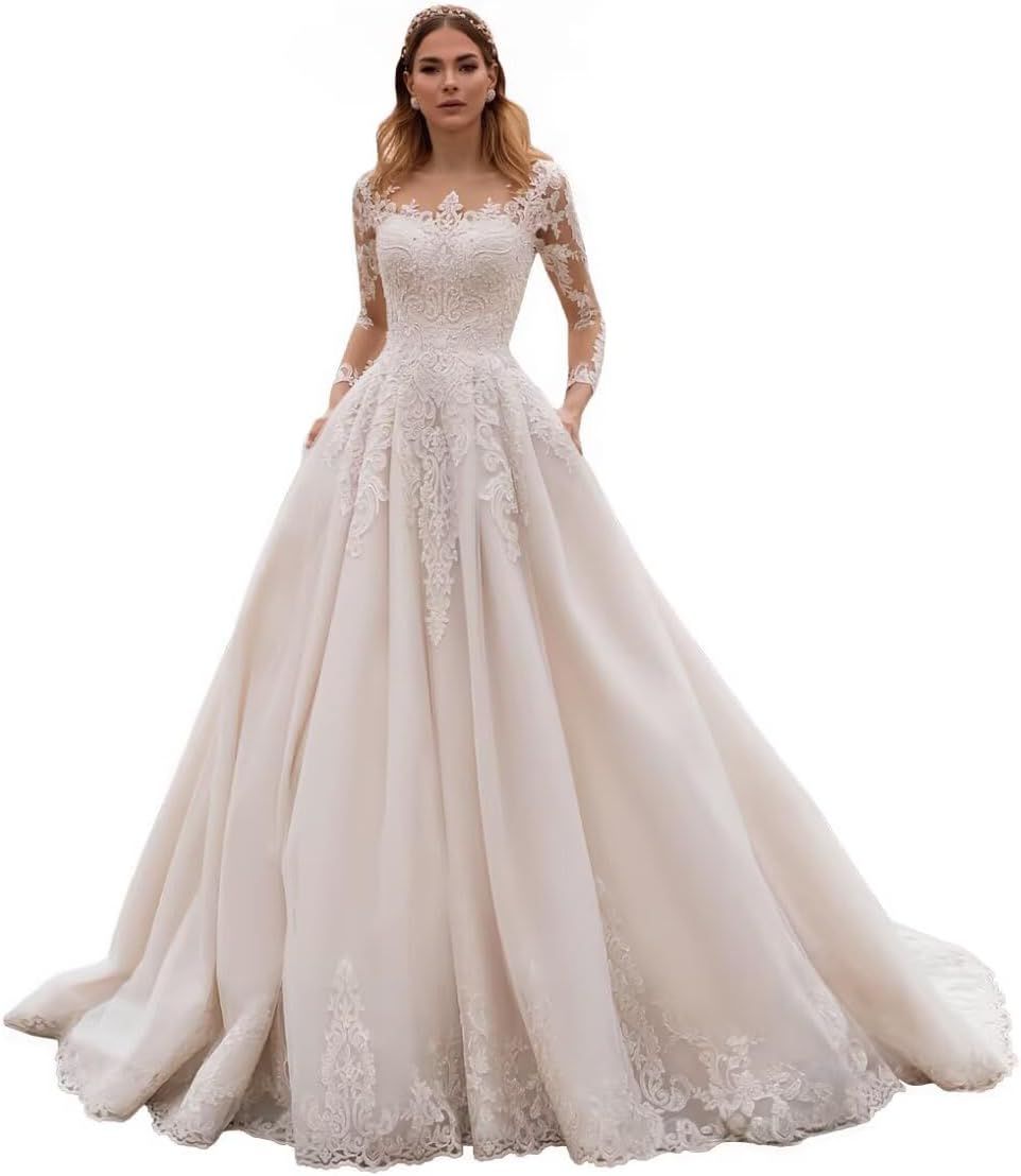 Item Description: This Plus Size Wedding Dresses for Brides Long Sleeve A-Line Flared Lace Applique Bridal Gowns with Train shows the sexy and elegant beauty of bride, is every bride deserves to have. Custom Made: Dresses can be made according to your measurements with no more charges,the measurements we need is:1.Bust 2.Waist 3.Hips 4.Hollow(or Shoulder) to Floor 5.The height of your high heel shoes. Occasion:Prom Dresses, Party Dress, Formal, Evening, Concert, Black Tie, Ball, Cocktail,and so on Waistline:Natural Decoration:Lace Applique Fabric Type:Tulle Dresses Length:Long with Train
